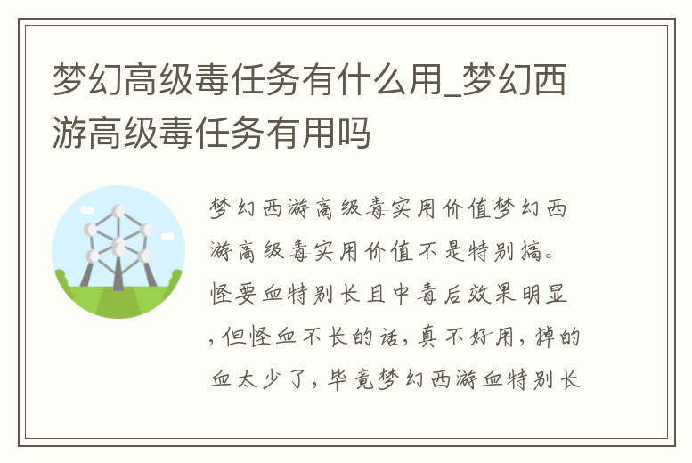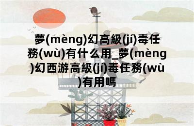 - 夢(mèng)幻高級(jí)毒任務(wù)有什么用_夢(mèng)幻西游高級(jí)毒任務(wù)有用嗎