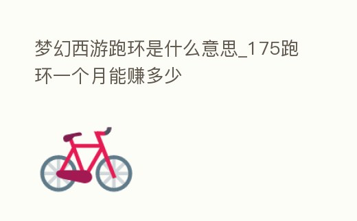 夢幻西游跑環是什么意思_175跑環一個月能賺多少