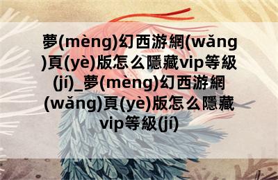 夢(mèng)幻西游網(wǎng)頁(yè)版怎么隱藏vip等級(jí)_夢(mèng)幻西游網(wǎng)頁(yè)版怎么隱藏vip等級(jí)