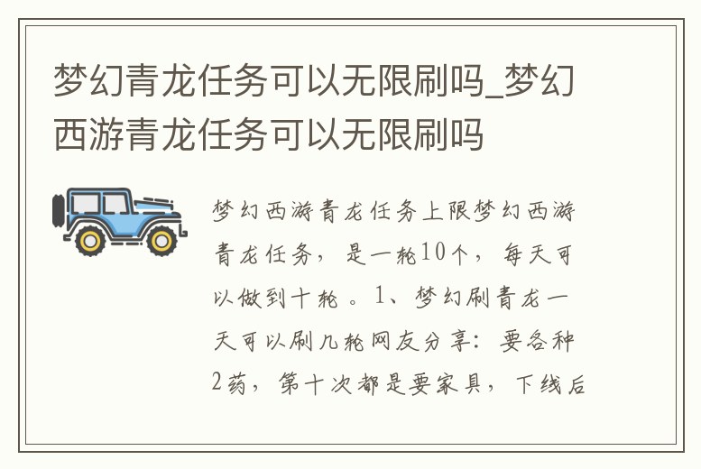 夢幻青龍任務可以無限刷嗎_夢幻西游青龍任務可以無限刷嗎