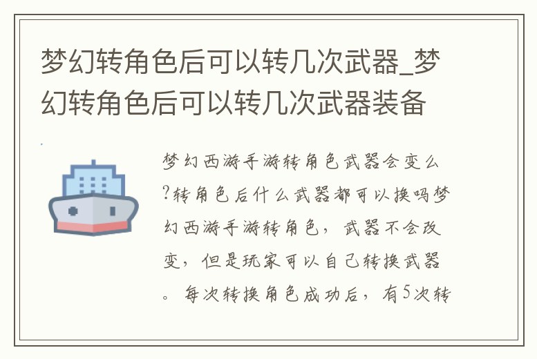 夢幻轉角色后可以轉幾次武器_夢幻轉角色后可以轉幾次武器裝備