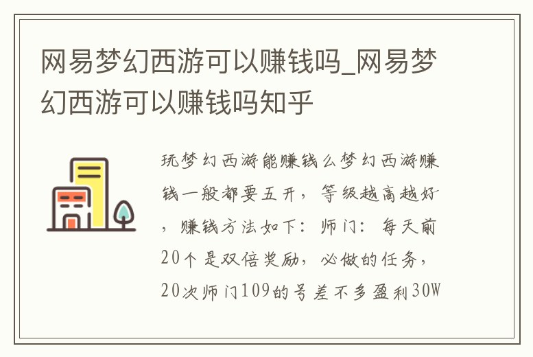 網易夢幻西游可以賺錢嗎_網易夢幻西游可以賺錢嗎知乎