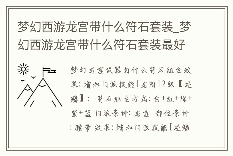 - 夢幻西游龍宮帶什么符石套裝_夢幻西游龍宮帶什么符石套裝最好
