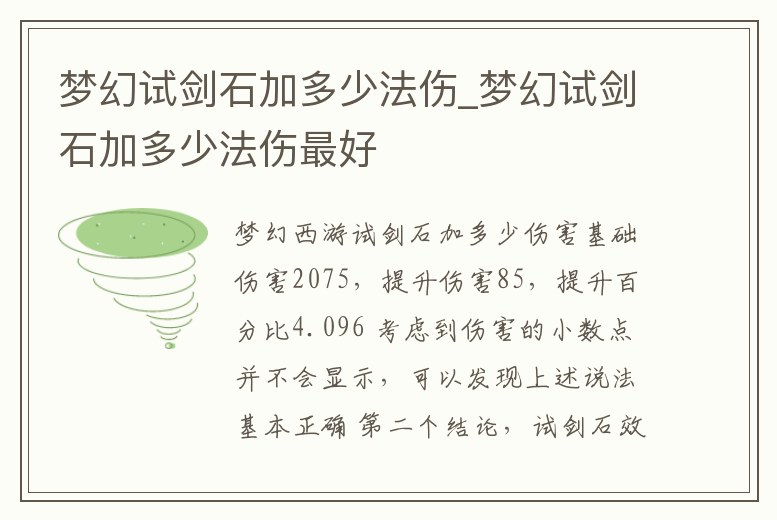 夢幻試劍石加多少法傷_夢幻試劍石加多少法傷最好