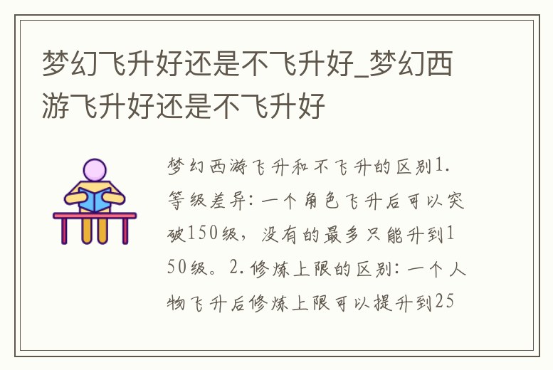 夢幻飛升好還是不飛升好_夢幻西游飛升好還是不飛升好