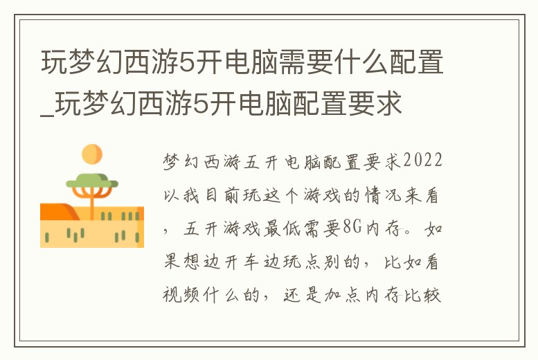玩夢幻西游5開電腦需要什么配置_玩夢幻西游5開電腦配置要求