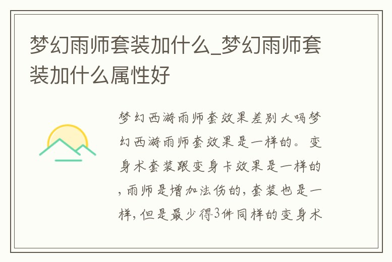 夢幻雨師套裝加什么_夢幻雨師套裝加什么屬性好