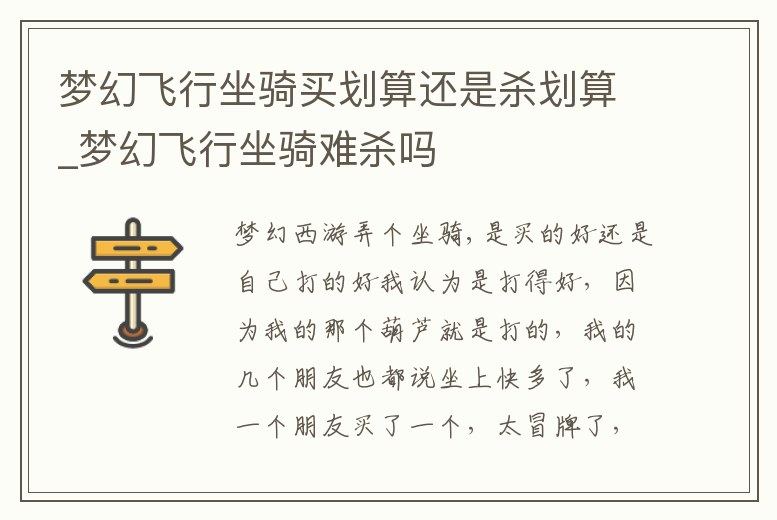 夢幻飛行坐騎買劃算還是殺劃算_夢幻飛行坐騎難殺嗎