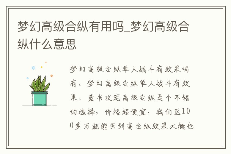 - 夢(mèng)幻高級(jí)合縱有用嗎_夢(mèng)幻高級(jí)合縱什么意思