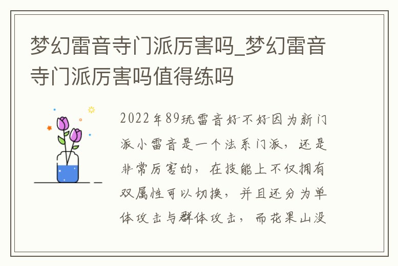夢幻雷音寺門派厲害嗎_夢幻雷音寺門派厲害嗎值得練嗎