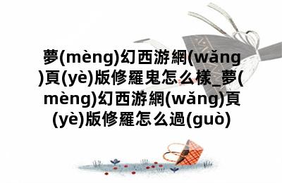 夢(mèng)幻西游網(wǎng)頁(yè)版修羅鬼怎么樣_夢(mèng)幻西游網(wǎng)頁(yè)版修羅怎么過(guò)