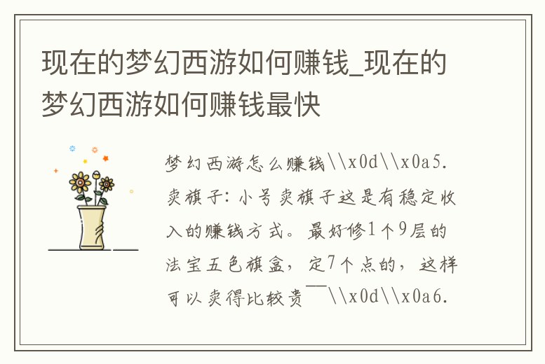現在的夢幻西游如何賺錢_現在的夢幻西游如何賺錢最快