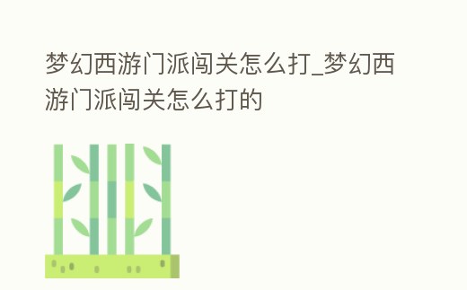夢(mèng)幻西游門(mén)派闖關(guān)怎么打_夢(mèng)幻西游門(mén)派闖關(guān)怎么打的
