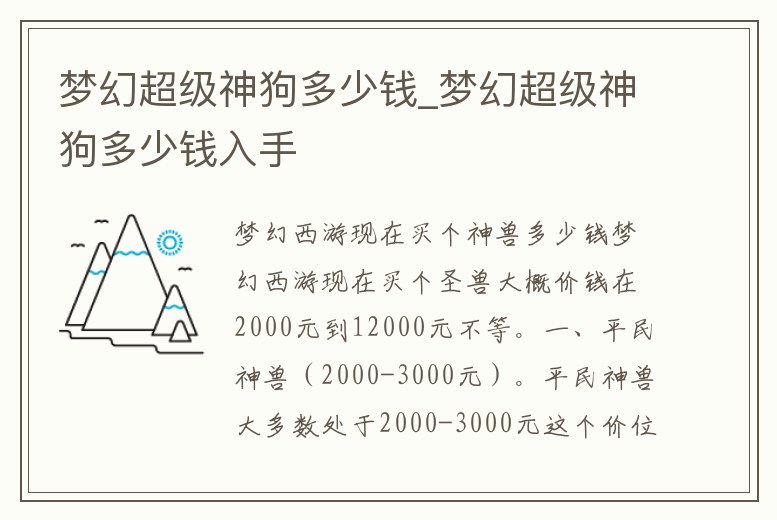 夢幻超級神狗多少錢_夢幻超級神狗多少錢入手