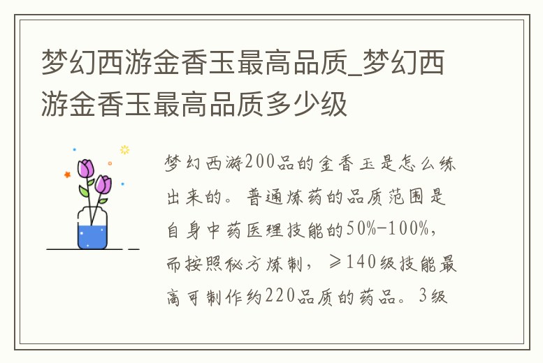 - 夢(mèng)幻西游金香玉最高品質(zhì)_夢(mèng)幻西游金香玉最高品質(zhì)多少級(jí)