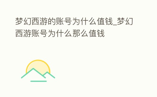 夢幻西游的賬號為什么值錢_夢幻西游賬號為什么那么值錢