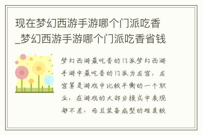現在夢幻西游手游哪個門派吃香_夢幻西游手游哪個門派吃香省錢