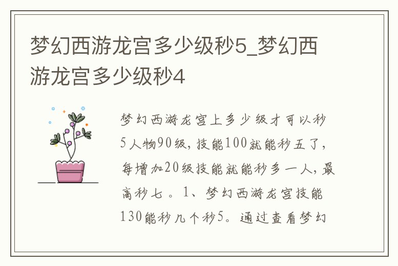 夢幻西游龍宮多少級秒5_夢幻西游龍宮多少級秒4