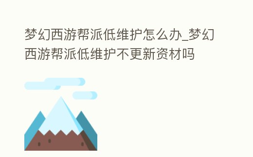 夢幻西游幫派低維護怎么辦_夢幻西游幫派低維護不更新資材嗎