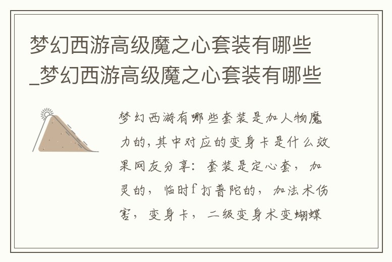 夢幻西游高級魔之心套裝有哪些_夢幻西游高級魔之心套裝有哪些技能