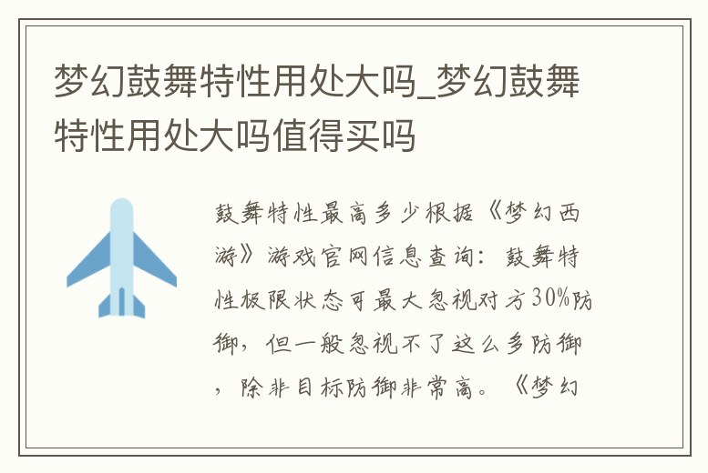 夢幻鼓舞特性用處大嗎_夢幻鼓舞特性用處大嗎值得買嗎