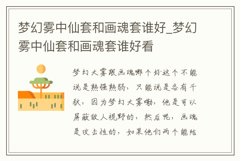 - 夢(mèng)幻霧中仙套和畫魂套誰好_夢(mèng)幻霧中仙套和畫魂套誰好看