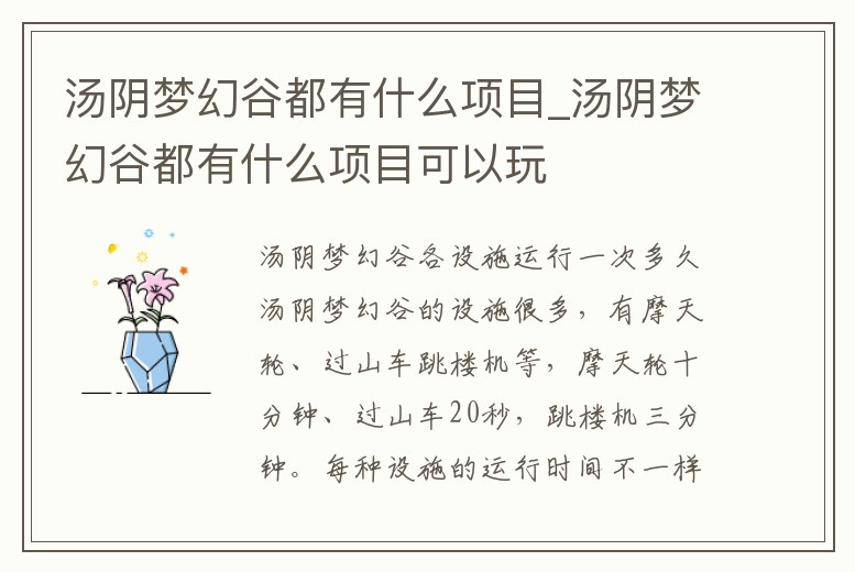 湯陰夢幻谷都有什么項目_湯陰夢幻谷都有什么項目可以玩