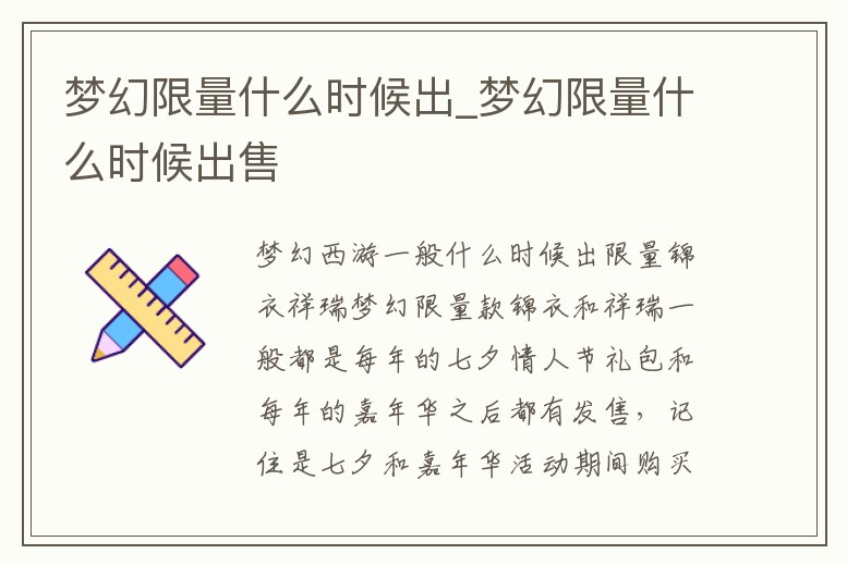 夢幻西游一般什么時候出限量錦衣祥瑞