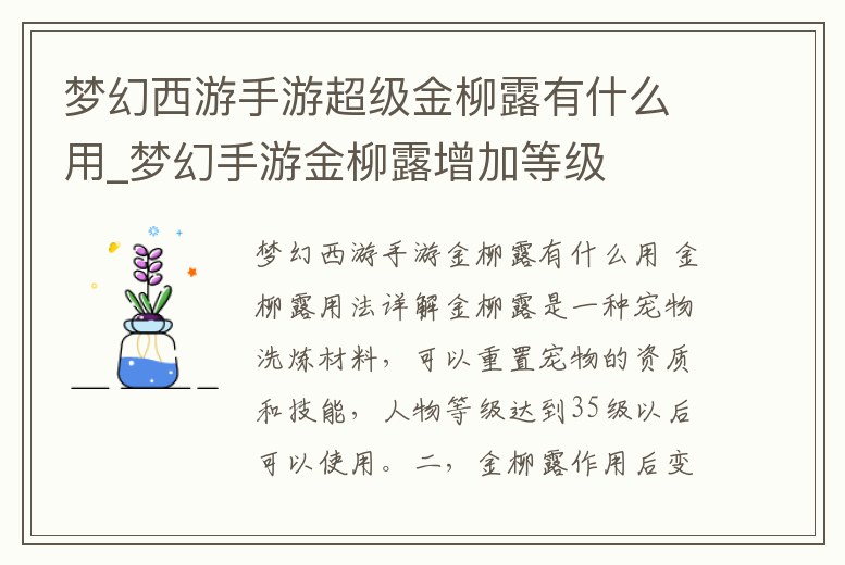 1、夢幻西游手游金柳露有什么用?什么時候用