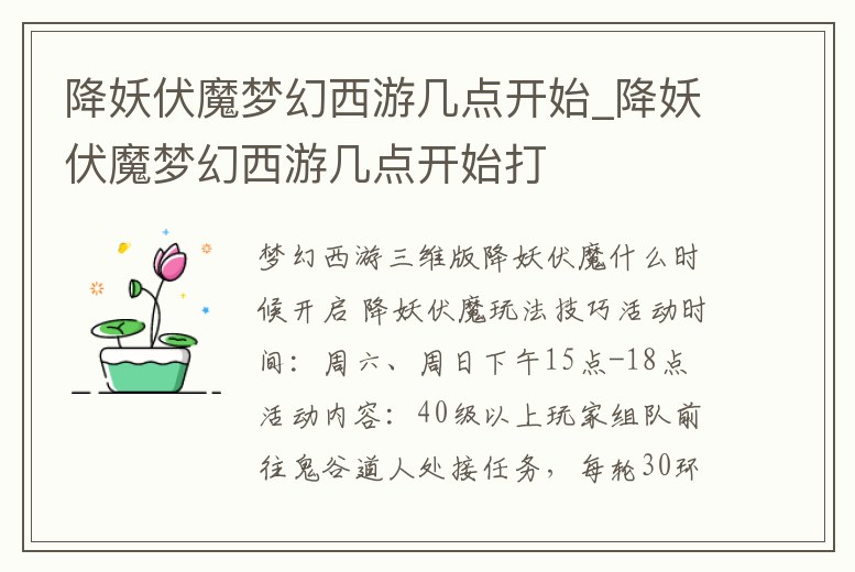 降妖伏魔夢幻西游幾點開始_降妖伏魔夢幻西游幾點開始打