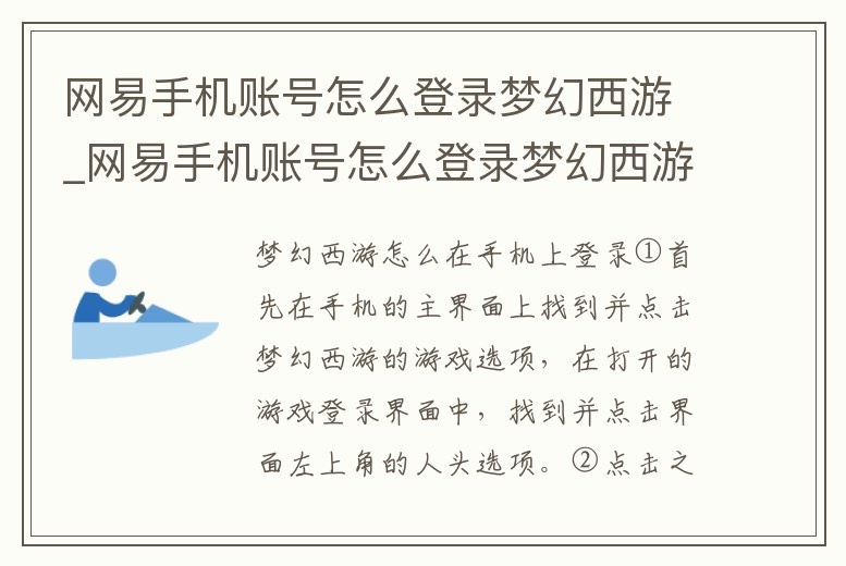 網易手機賬號怎么登錄夢幻西游_網易手機賬號怎么登錄夢幻西游互通版
