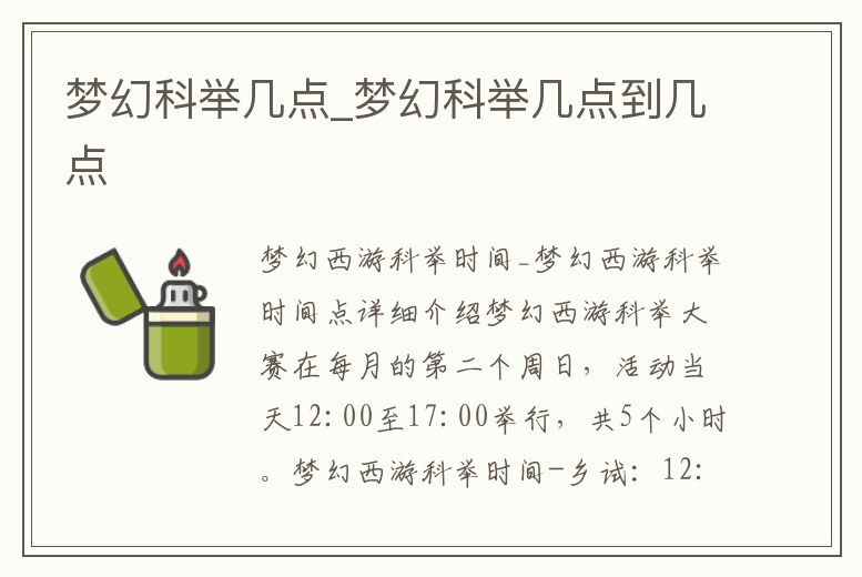 夢幻科舉幾點_夢幻科舉幾點到幾點
