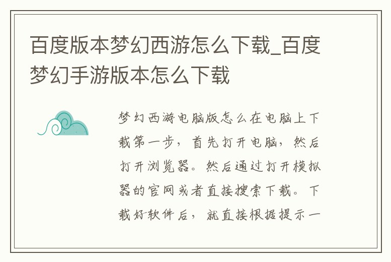 百度版本夢幻西游怎么下載_百度夢幻手游版本怎么下載