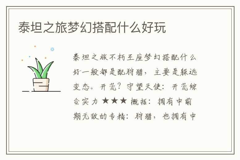 1、泰坦之旅 夢幻 搭配哪個職業好