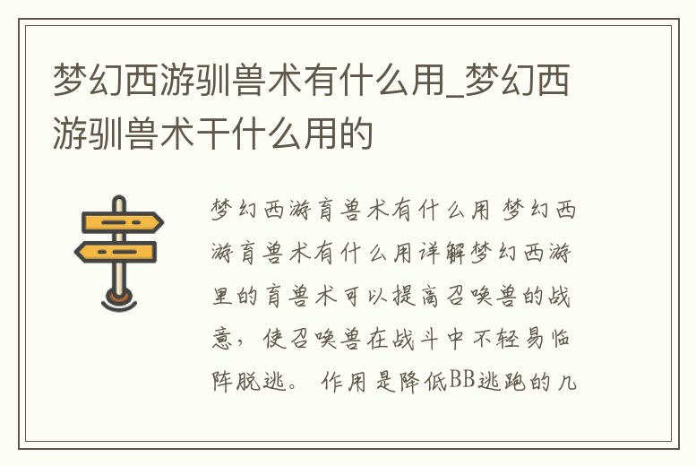 夢幻西游馴獸術有什么用_夢幻西游馴獸術干什么用的
