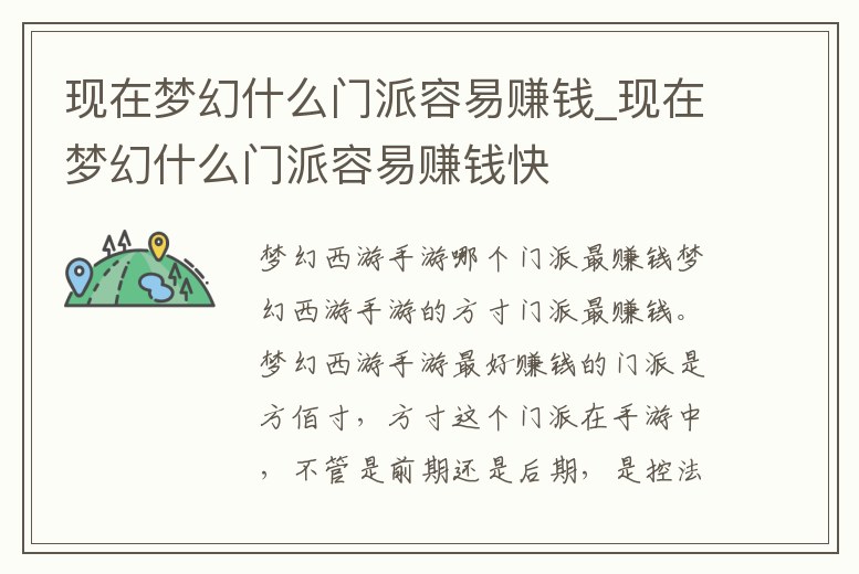 現在夢幻什么門派容易賺錢_現在夢幻什么門派容易賺錢快