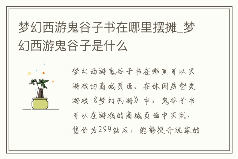 夢幻西游鬼谷子書在哪里擺攤_夢幻西游鬼谷子是什么