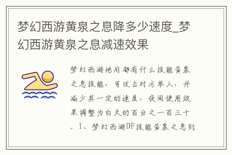 夢幻西游黃泉之息降多少速度_夢幻西游黃泉之息減速效果