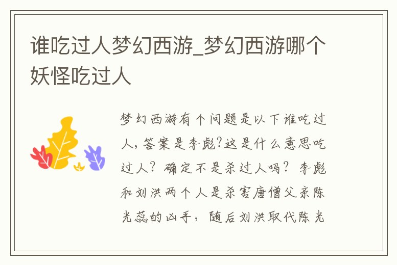 吃過人?確定不是殺過人嗎?李彪和劉洪兩個人是殺害唐僧父親陳光蕊的兇手,隨后劉洪取代陳光蕊去江州赴任了,并且霸占了唐僧的母親。沒聽說李彪吃人唉。