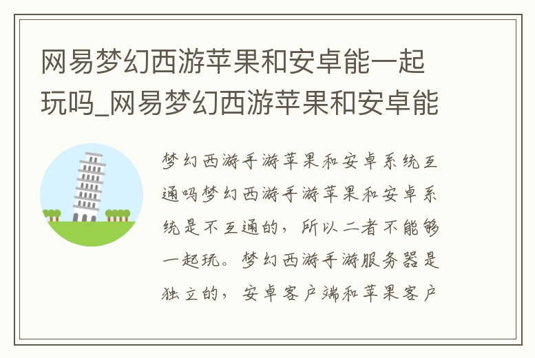 網易夢幻西游蘋果和安卓能一起玩嗎_網易夢幻西游蘋果和安卓能一起玩嗎知乎