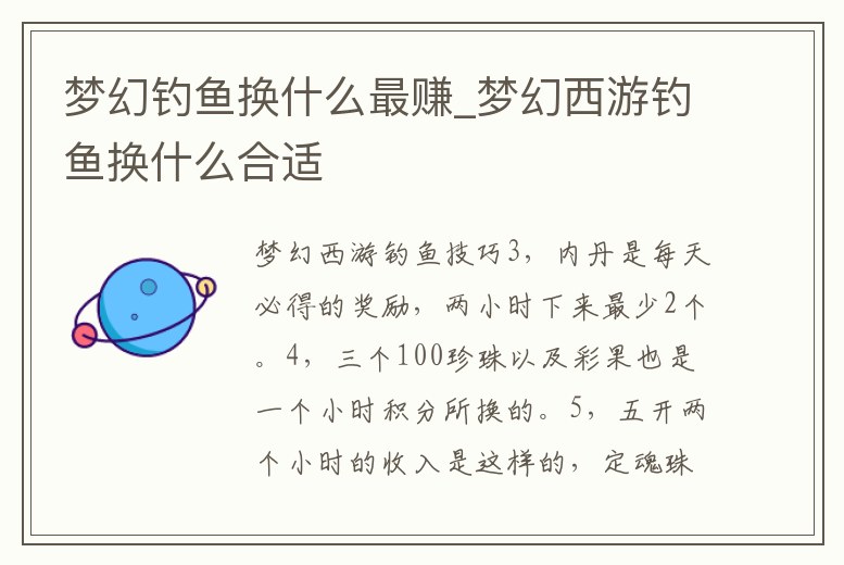 夢幻釣魚換什么最賺_夢幻西游釣魚換什么合適
