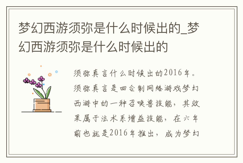 夢(mèng)幻西游須彌是什么時(shí)候出的_夢(mèng)幻西游須彌是什么時(shí)候出的
