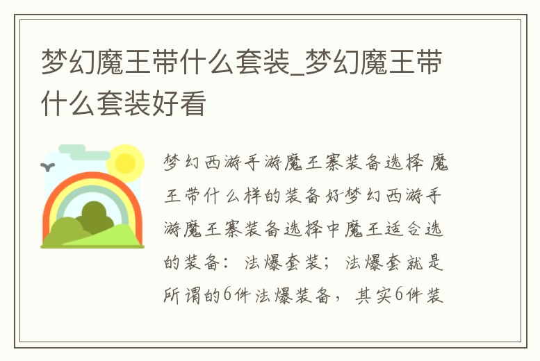 夢幻魔王帶什么套裝_夢幻魔王帶什么套裝好看