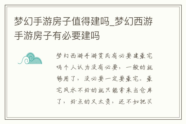 夢幻手游房子值得建嗎_夢幻西游手游房子有必要建嗎