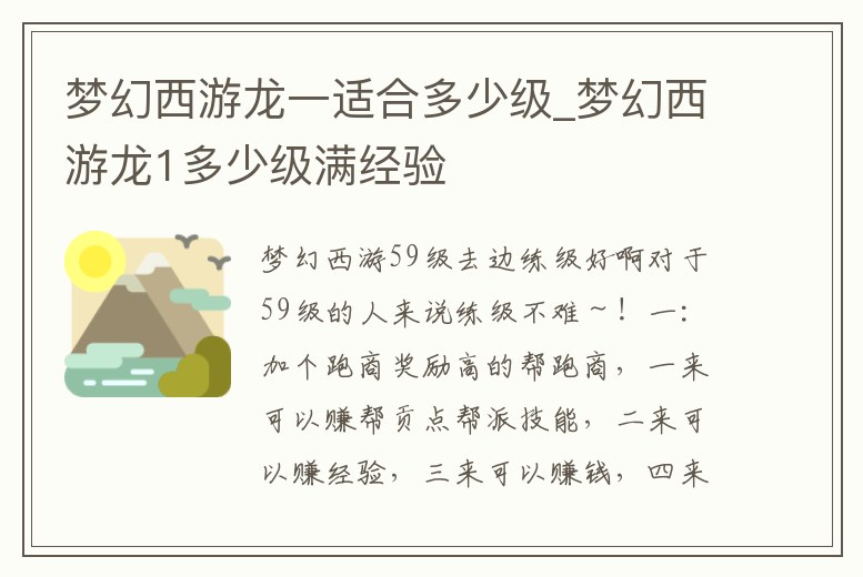 夢幻西游龍一適合多少級_夢幻西游龍1多少級滿經驗