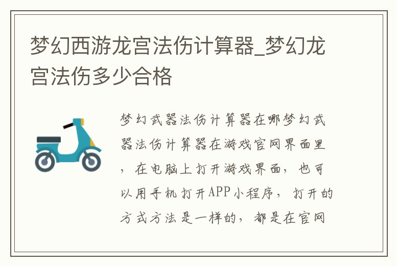 夢幻西游龍宮法傷計算器_夢幻龍宮法傷多少合格