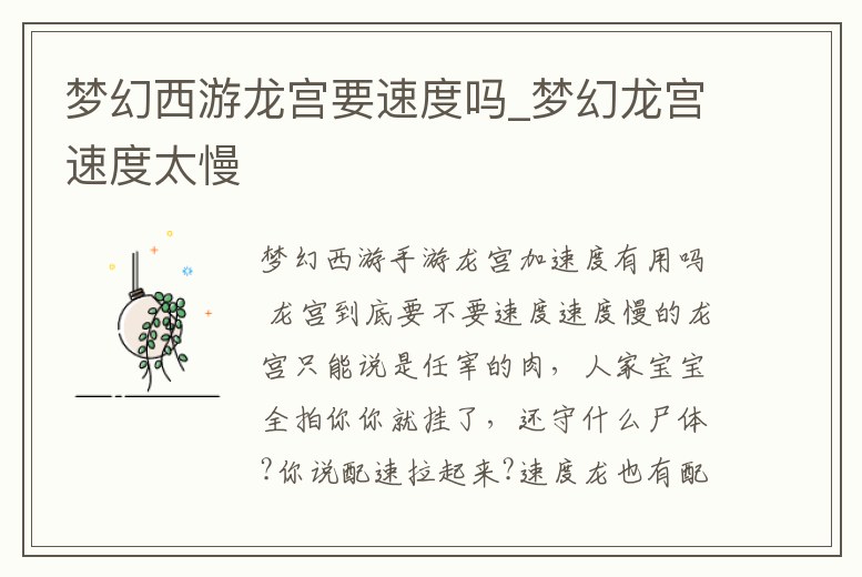 夢幻西游龍宮要速度嗎_夢幻龍宮速度太慢