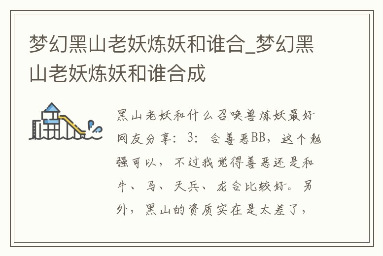 夢幻黑山老妖煉妖和誰合_夢幻黑山老妖煉妖和誰合成