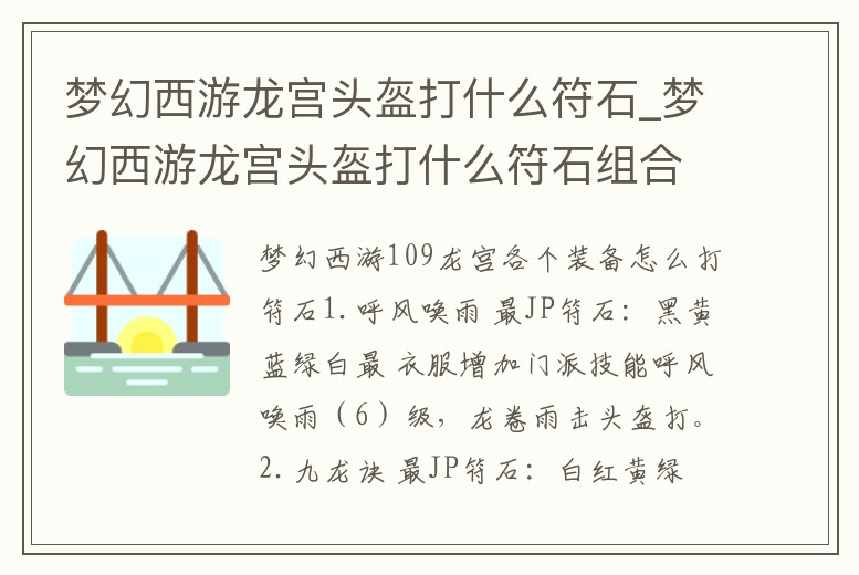 - 夢(mèng)幻西游龍宮頭盔打什么符石_夢(mèng)幻西游龍宮頭盔打什么符石組合