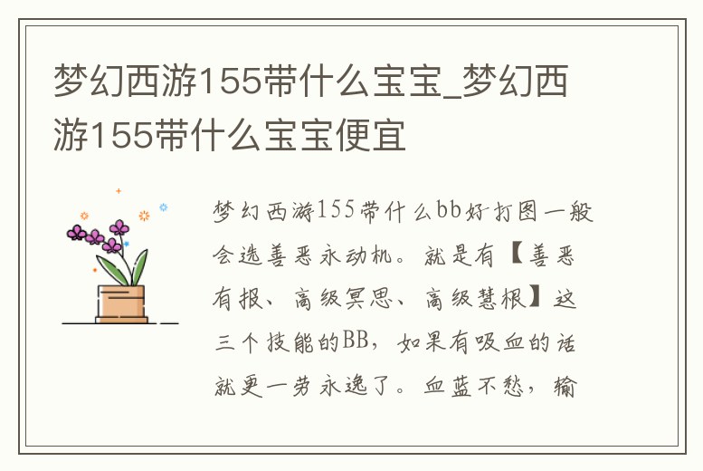夢幻西游155帶什么寶寶_夢幻西游155帶什么寶寶便宜